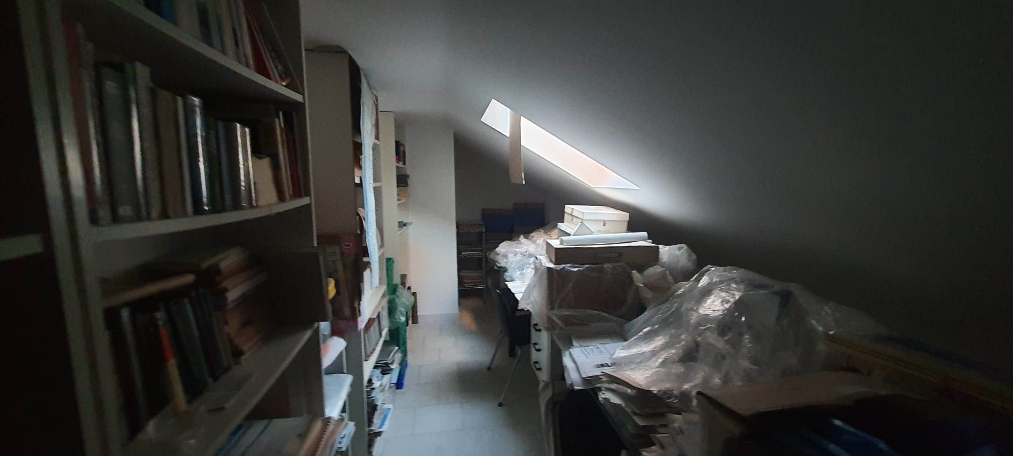 una cantina e un piccolo sottotetto uso deposito, posto al piano quarto. La costruzione è degli anni 2008, le rifiniture sono buone, gli infissi sono in legno con vetrocamera, il riscaldamento è autonomo, vi è la presenza di un camino rifinito con marmo di carrara, di una cabina armadio, videocitofono, e impianto di allarme di sicurezza.